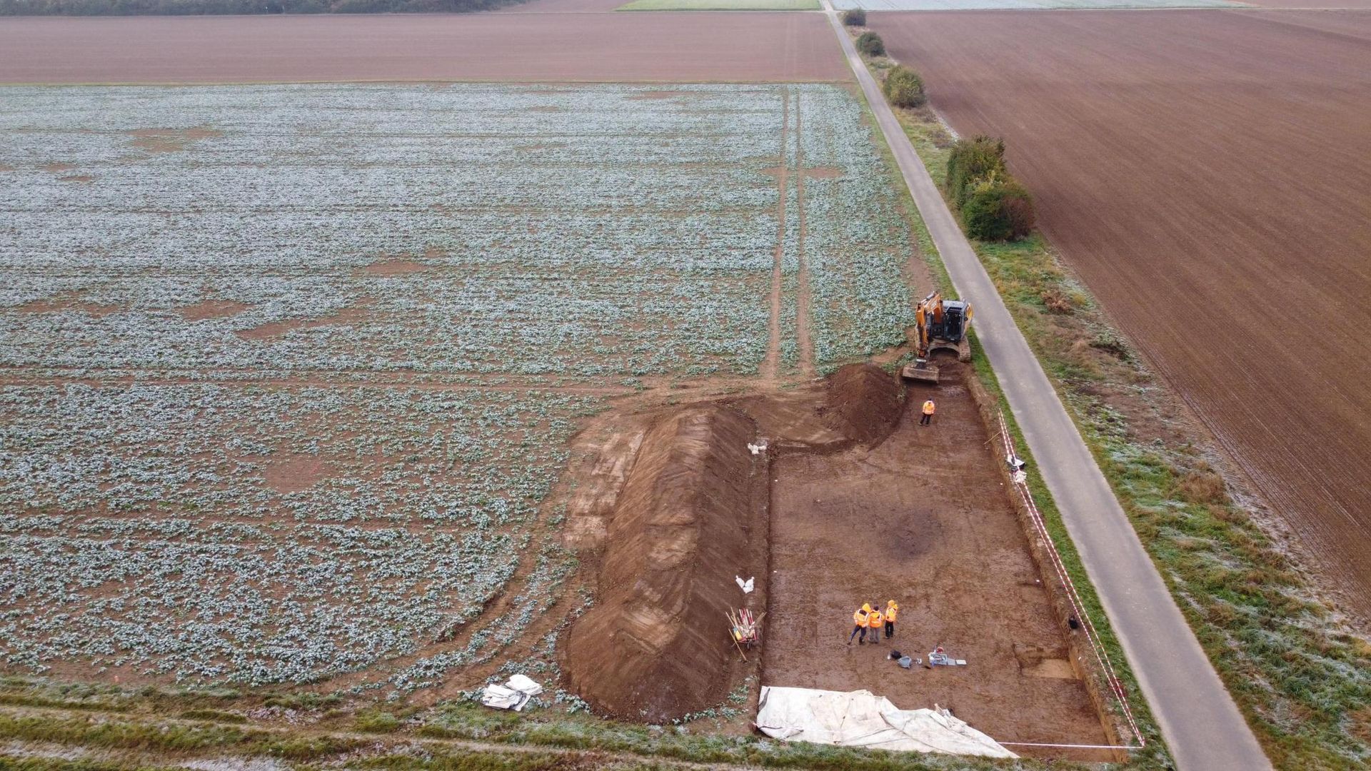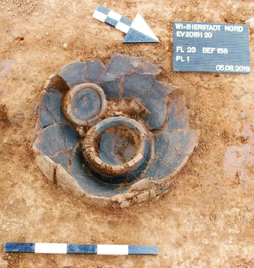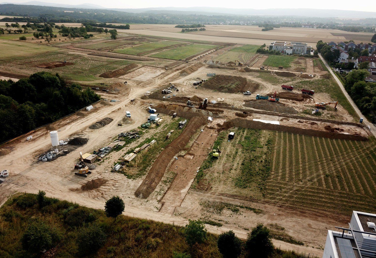 Die Erschließungsmaßnahme für ein Gewerbegebiet in Hattersheim a.M. führte zu Bodeneingriffen an einer bereits bekannten Fundstelle. Daher wurden hier im Jahr 2020 von der WiBA bauvorgreifende Ausgrabungen durchgeführt. Die ältesten Grabungsbefunde befanden sich im Süden der Fläche und sind der jungsteinzeitlichen "Michelsberger Kultur" (4400–3500 v. Chr.) zuzurechnen. Bei vielen der aufgedeckten Strukturen handelte es sich um Siedlungsreste, vor allem Vorratsgruben. Eine der Gruben enthielt das Skelett eines Kindes, in einer zweiten Grube waren ein Neugeborenes und ein erwachsenes Individuum bestattet. Aus derselben Grube stammen auch ein einzelner menschlicher Schädel und eine Schädelkalotte, die zusammen mit zwei vollständig erhaltenen Gefäßen am Grubenrand platziert war. Da sich die "Michelsberger Kultur" durch das Fehlen von Friedhöfen auszeichnet und so recht wenig über das Bestattungswesen und die Totenbehandlung der damaligen Menschen bekannt ist, sind diese Befunde von besonderem Interesse für die Archäologie.